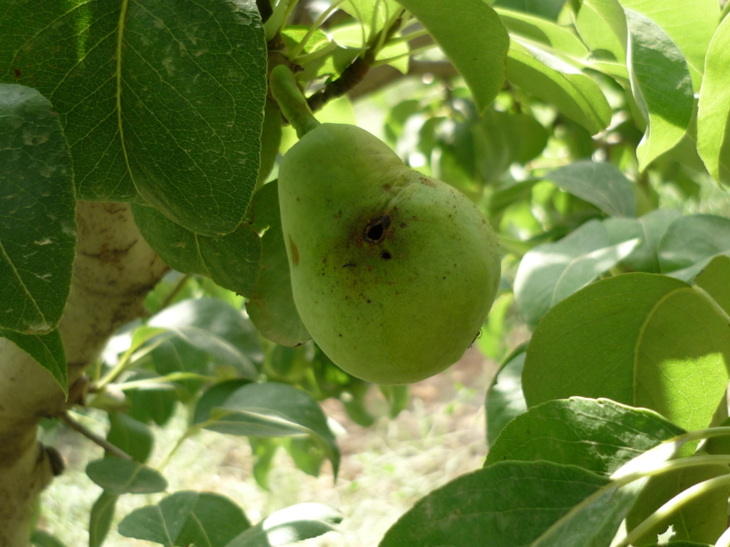 Les attaques de tavelure démarrent au gonflement des bourgeons, à l’apparition des jeunes feuilles et des fruits. Les fruits attaqués se couvrent de croûtes brun-noir et tombent.